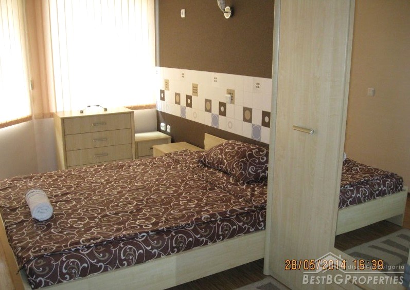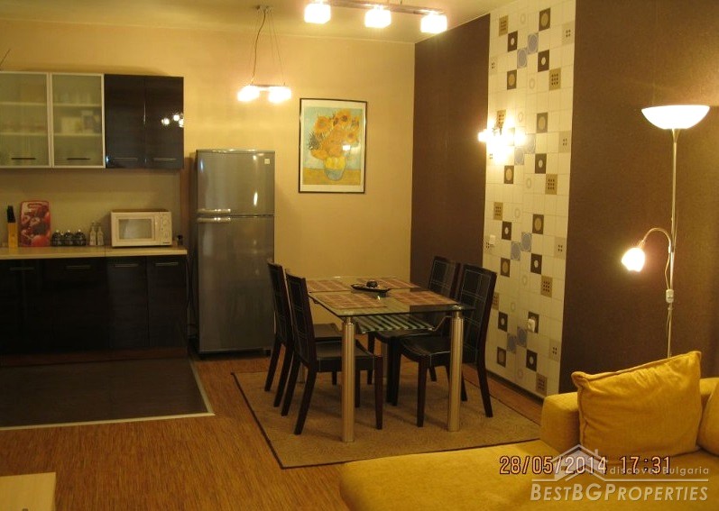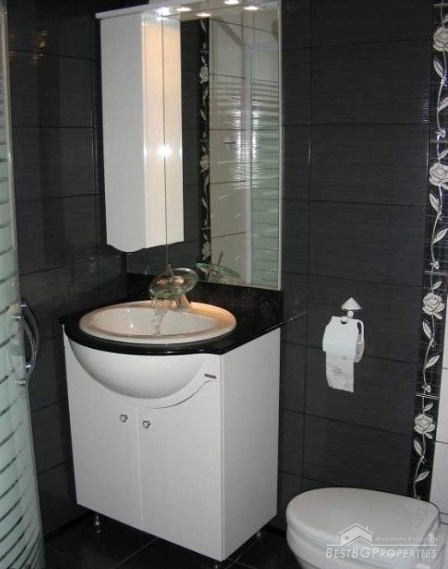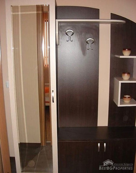 The apartment is part from a new 6-storey residential building. It is on the 3rd floor and has total living area of 70 sq m. The apartment is fully furnished and equipped with kitchen appliances (all kitchen utensils). There is also an iron, ironing board, clothes dryer, air conditioning, TV, cable, etc. The bathroom has a shower with hydromassage.