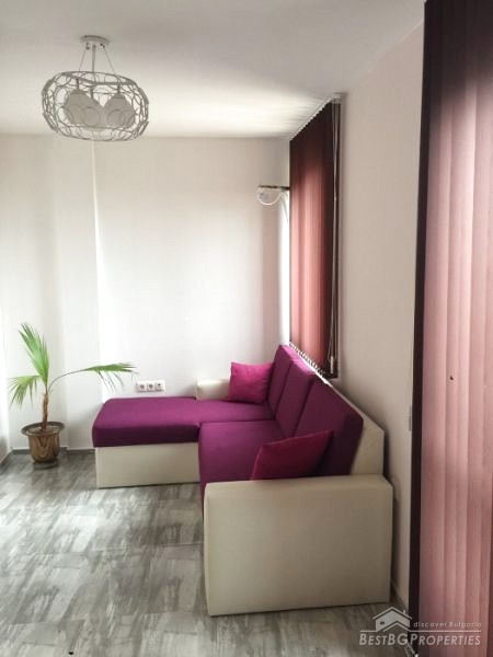 The apartment is part of a newly built residential complex on Peshtersko Shose Boulevard. The apartment is very bright, east facing, furnished in a fresh and modern style. The terrace is spacious, offering panoramic views towards the hills.