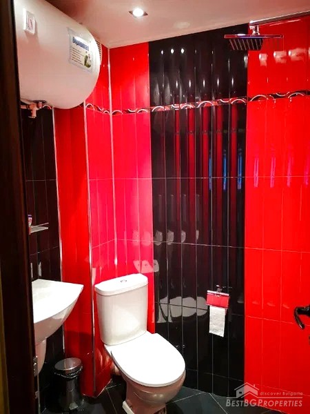 The apartment consists of a spacious living room with dining area and a kitchenette – fully equipped, spacious bedroom, designer-made bathroom with toilet, a terrace with nice views, entrance hall and a basement of 2.14 sq m. It is located on the first (above ground floor) floor.