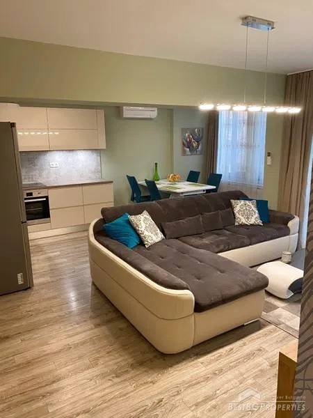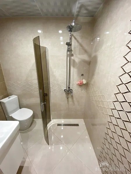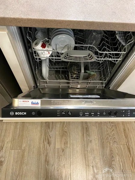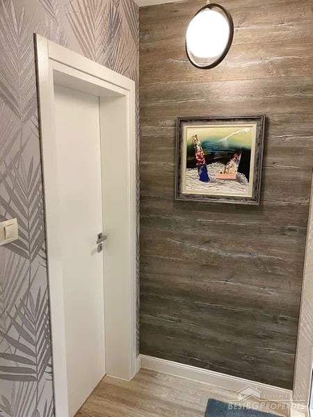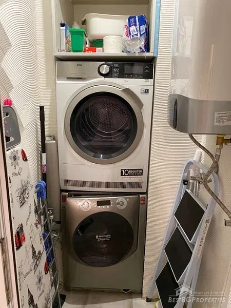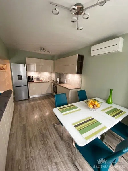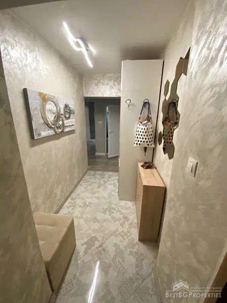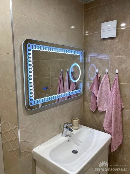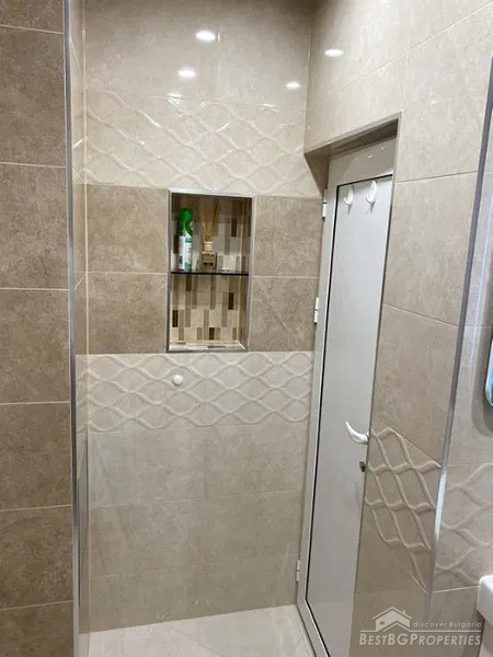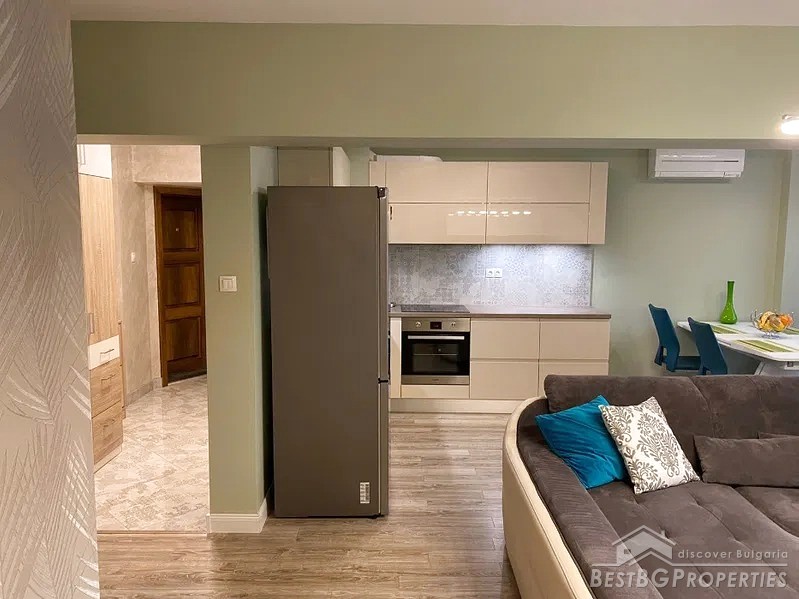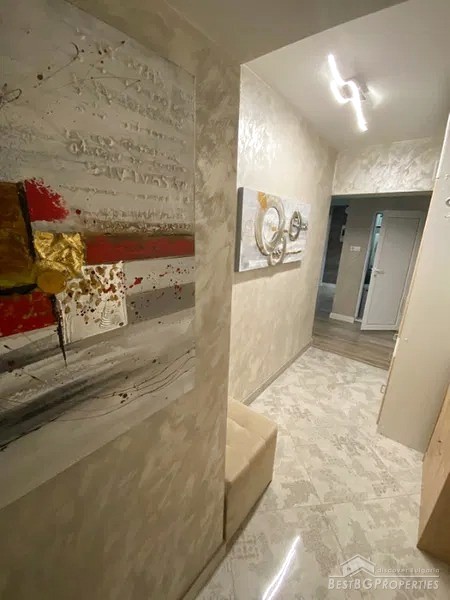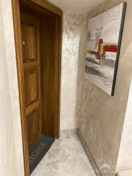 The apartment is completely renovated and luxuriously furnished. There is insulation on the walls and ceilings, central heating, equipped kitchen with built-in high-end appliances (oven, hob, dishwasher, aspirator, washing machine, dryer, and boiler), laminated parquet and Italian granite. The bathroom is fitted with high-grade Italian granite, Italian sink Kolo, etc.