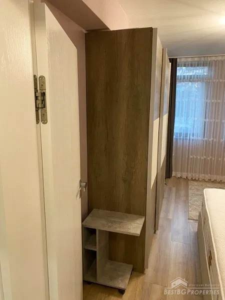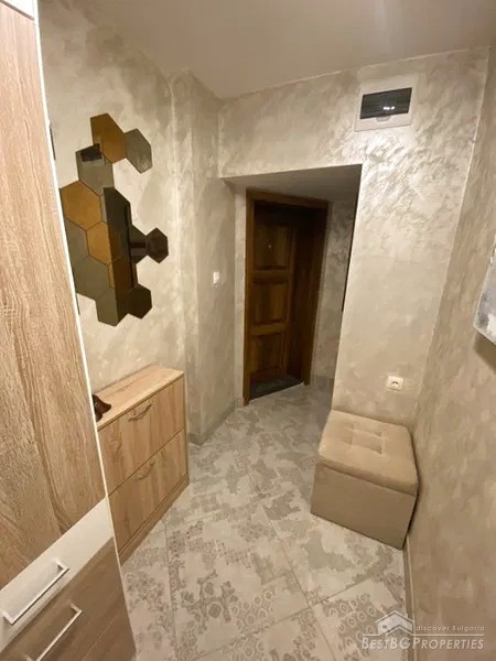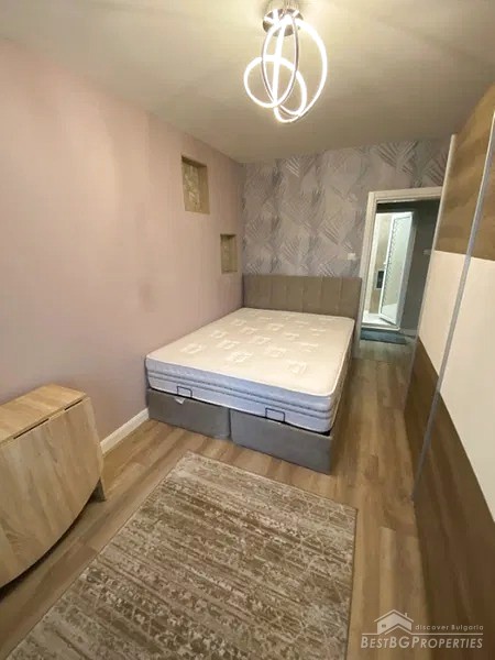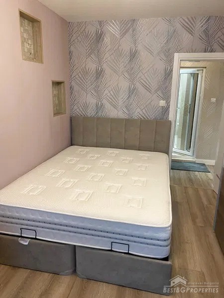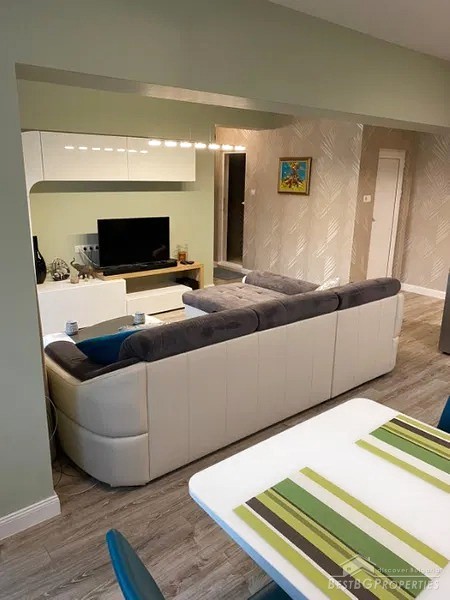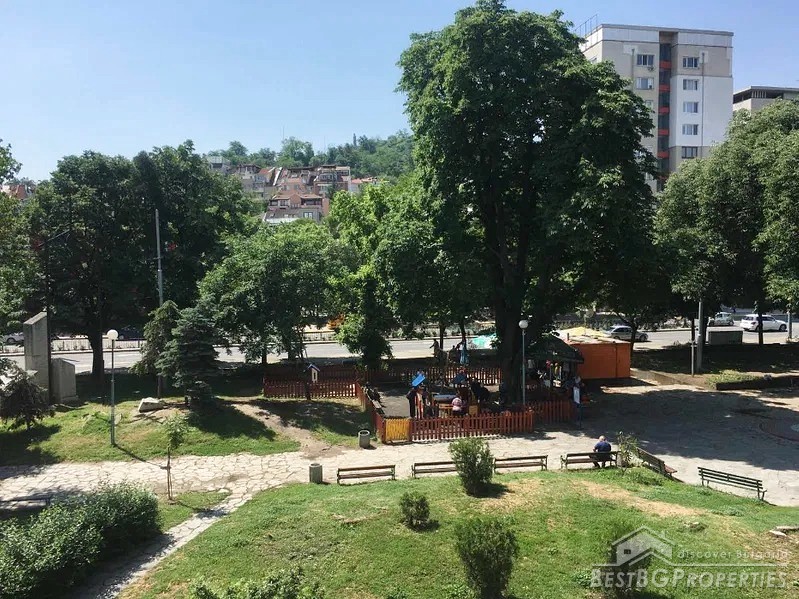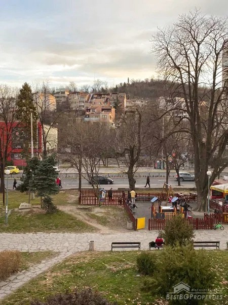 We offer you a two-bedroom apartment, converted into a one-bedroom. It is located on the second floor in a brick residential building the center of Plovdiv. The property has a total living area of 80 sq m. It is facing south and consists of a large living room with dining area and kitchenette, one spacious bedroom, bathroom with toilet, laundry room, entrance hall with corridor and a lovely terrace overlooking the park and Mount Alyosha.