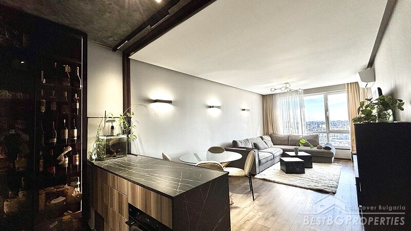 For sale is a stylish one-bedroom apartment with a total living area of 75 sq m, located on the 13th floor of the modern luxury building in Trakiya district in Plovdiv. The building offers 24-hour security with controlled access via individual chip, as well as a comprehensive video surveillance system covering the common areas and perimeter of the complex.