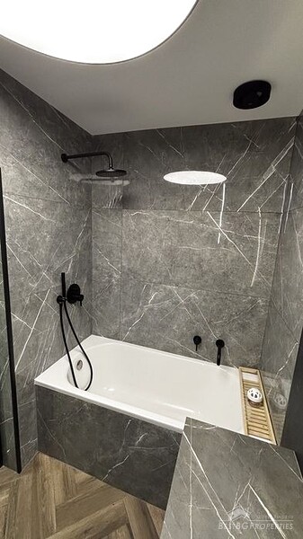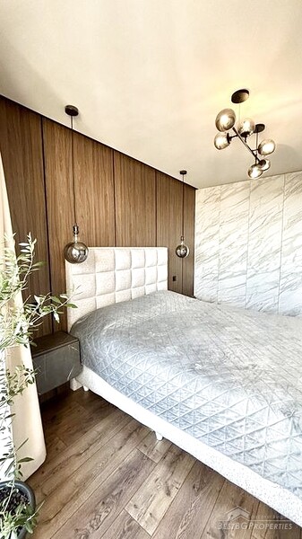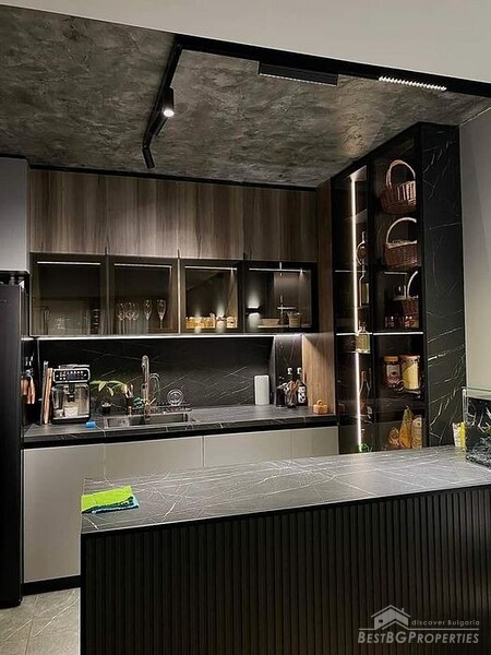 The apartment is finished with high-quality materials and exceptional attention to detail, combining contemporary design, functionality, and comfort. It is equipped with interior doors custom-made of solid wood for enhanced sound insulation. The flooring features Italian granite tiles, and the property is equipped with a 75-inch TV, a Daikin air conditioner with an air-purifying filter, and a double-door refrigerator with dispenser and ice maker. The spacious kitchen includes an island, and the bathroom offers large built-in storage cabinets.