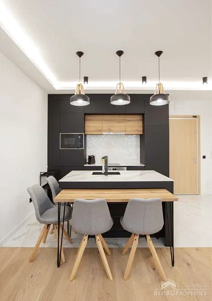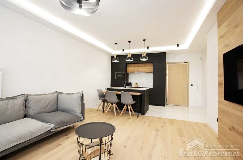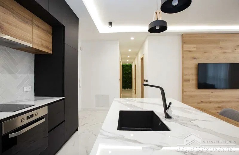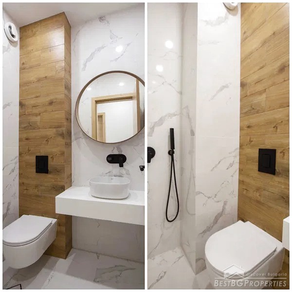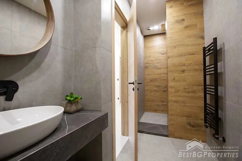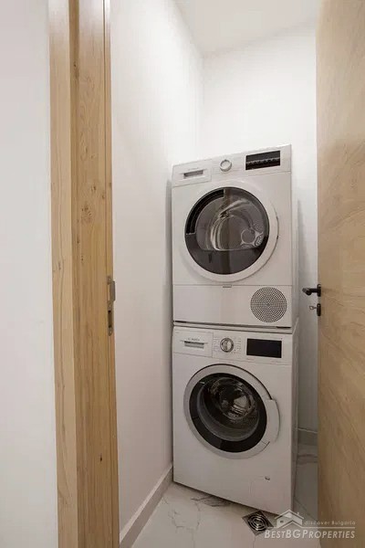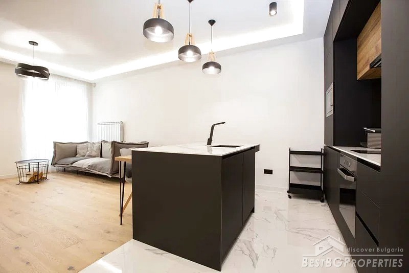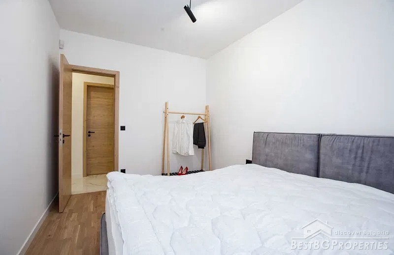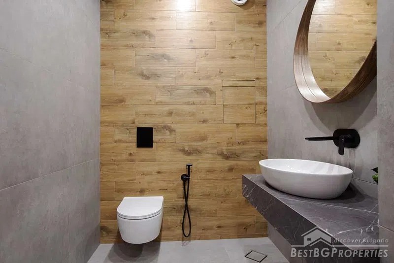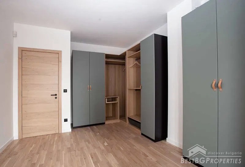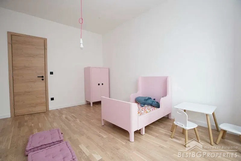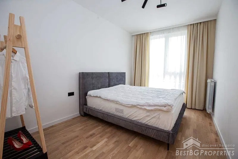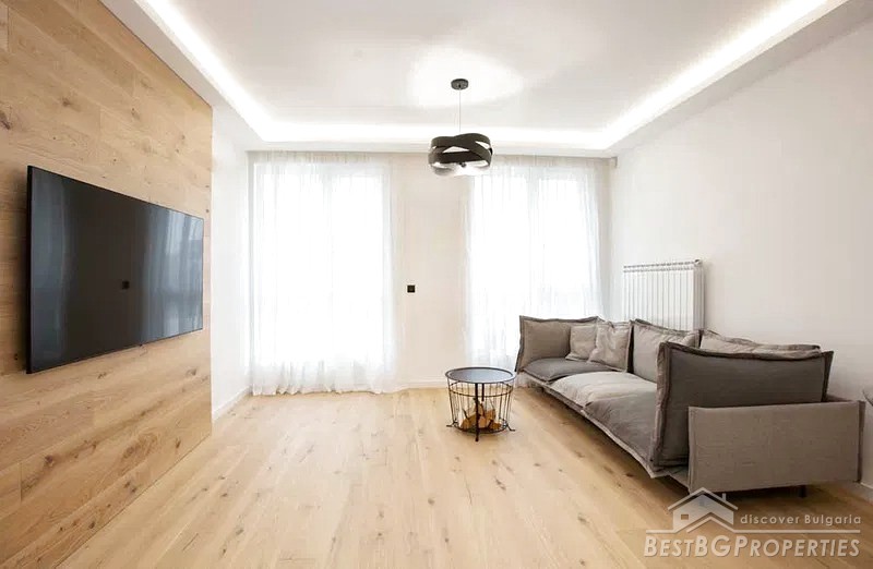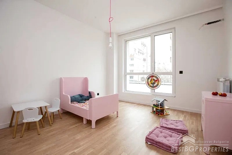 The apartment is in a new building with modern architecture, luxurious shared areas, two elevators and underground parking with a warm connection. The building is set in a prestigious part of Sofia in a quiet but at the same time communicative place. It is next to an ideal center of the city, less than 10 minutes walk from Borisova Gradina, 3 minutes from Geo Milev Park and 2 minutes from a future metro station.