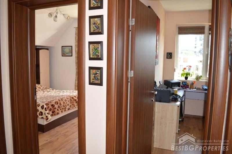 Four-bedroom fully furnished apartment located on the ninth floor out of 10 in a newly built building, with Permission for use. The building has luxurious common shares, two hydraulic lifts. The apartment is facing southeast / south / northeast. There is a parking space included in the price.