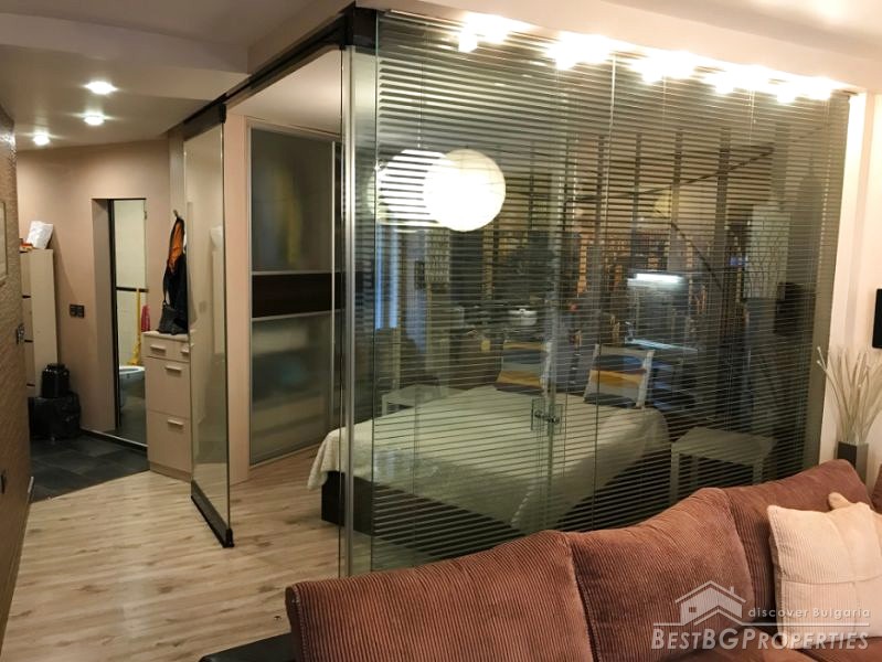 This is a stylishly furnished, modern, open space apartment located in Briz quarter of Varna City.