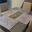 Living room - built-in kitchen with ceramic hob, oven, dishwasher, refrigerator, dining table with chairs, corner sofa, shelves, electric wall fireplace;