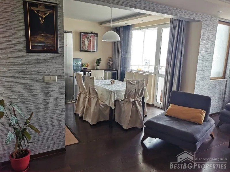 The apartment is in excellent condition, with external insulation, fully furnished, very functional. The heating is with air conditioners. There is a possibility for conversion into a four-room apartment.