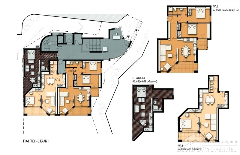 The complex is located on the beach, absolute waterfront. It consists of 4 maisonettes (on the first floor, each of them has direct access to the beach), 14 apartments and 4 studios are for sell fully finished, but without furniture. The complex does not rely only on the unique location and views, one of the leading stuff is the quality of construction- built with brick, QUALITY insulation, joinery and windows. It will have a very modern spa center - sauna, steam bath, Roman bath, massage room, relaxation room, Russian bath! The complex also will have panoramic elevator, the air conditioners are hidden in a special niche. It will provide laundry room with staff, enabling owners to feel special guests. This service will be included into annual maintenance fee of the complex. Also there will be 24 hours security guards. The complex offers modern and cozy reception, enabling the owners to give their apartments for rent.