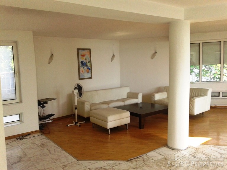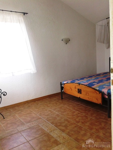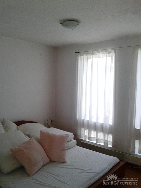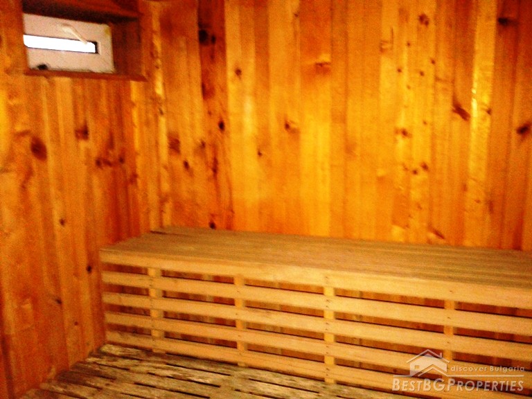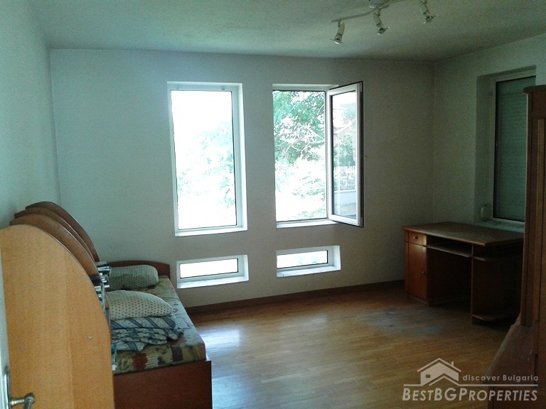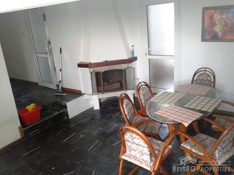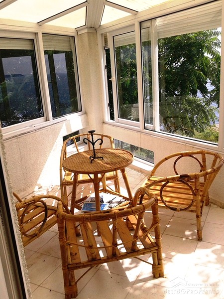 It is a two storey luxury house with wonderful sea view, situated on the first sea line in the town of Chernomorets. The house has a total living area of 190 sq m and a yard of 465 sq m. The distribution of the premises inside is as follows: on the ground floor there is a sauna, fitness room, storage room and a garage. The first floor consists of a bathroom with toilet, large living room and kitchen. The second floor comprises of three bedrooms, lounge, kitchen, bathroom with bathtub, and an outdoor terrace with stunning sea view. The house needs a bit of renovation.