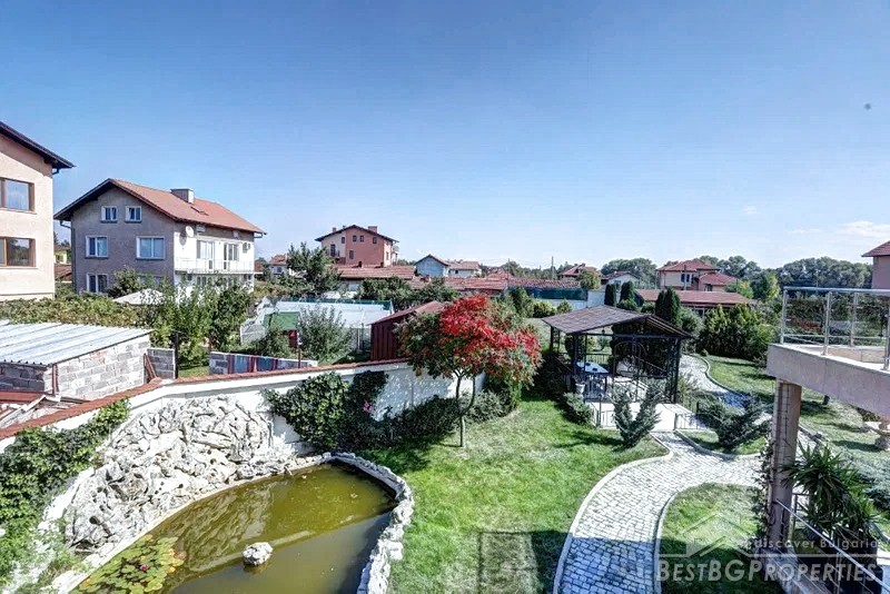 The yard is 1300 sq m. It is equipped with automated irrigation system with hidden sprinklers + drip irrigation. There is also a water probe, a gazebo, a second detached building (warehouse) of about 50 square meters with insulation.