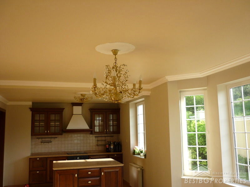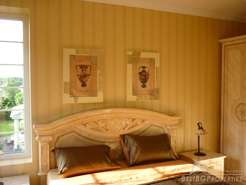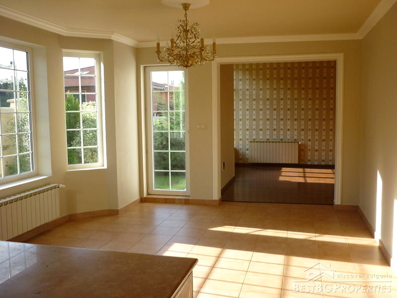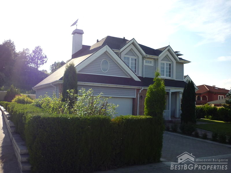 This new luxury house for sale is located in a closed type complex on the outskirts of the city Sofia and at the foot of the Mountain Vitosha. The house has a functional layout with perfectly arranged and landscaped yard to it.