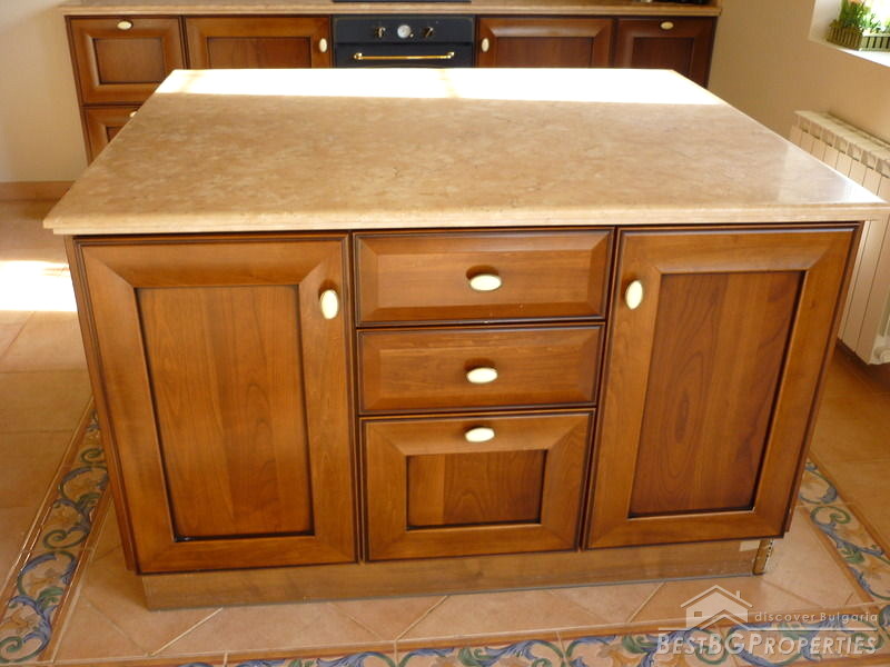 Layout: First floor: living room with fireplace, kitchen and dining room, guest room, WC for guests, laundry room, garage with inner access, boiler, second floor: master bedroom with bathroom with Jacuzzi and closet, three seperate bedrooms and a bathroom with WC; There is also an attic premise - 60 sq m with removable ladder access; Flooring and walls: Italian tiles, parquet.
