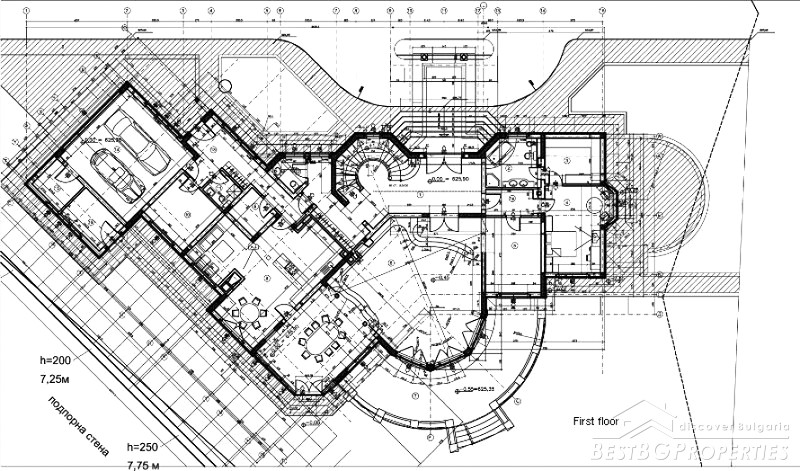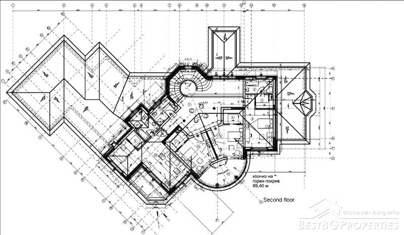 Peace and tranquility covers the entire complex and the house. The house has imaginative and very dynamic architecture style. The entire residence is lined with limestone and entire roof is copper. The house has its own water source. The area is gasified and has sewer line. The complex has a sports center for its residents, also a tennis court, football pitch, swimming pool.