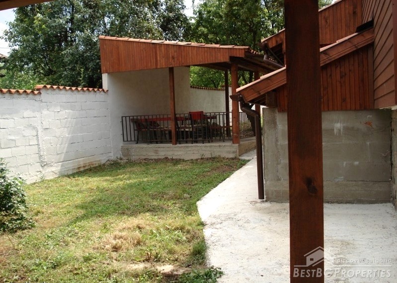 The distribution is as fallows: 1st floor - 2 rooms (floor - terracotta, walls - wood paneling, stone decoration, plaster), hallway and WC. Second floor has - 2 rooms (floors - wooden, walls - wood paneling, stone decoration, gypsum), hallway, bathroom with laundry, balcony. Third floor consists of one room (floor - wood, walls - wood paneling, stone decoration, gypsum) and a large covered terrace.