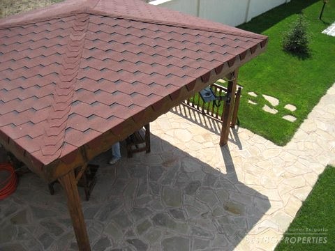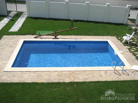 The house has a 165 sq m of living area and 680 sq m large garden. It has 2 floors. The yard is landscaped, there is a barbeque with big summerhouse, 2 parking places, swimming pool with dimensions 8x5 m, 1,5 m depth, african oak Jacuzzi, park lighting, outer washstand. The villa is equipped with security system, internet, and cable. There is air-conditioner in every room. The house is for sale luxury finished.