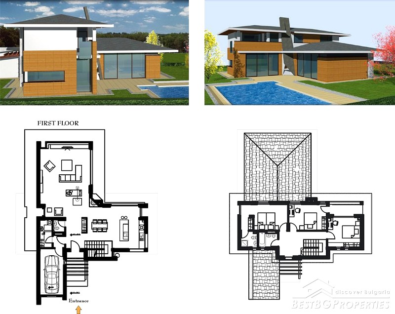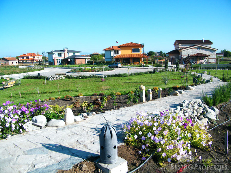 This is a luxury two story house for sale, part of a large residential complex consisting of different types of houses built all together on a large gated land near Plovdiv.