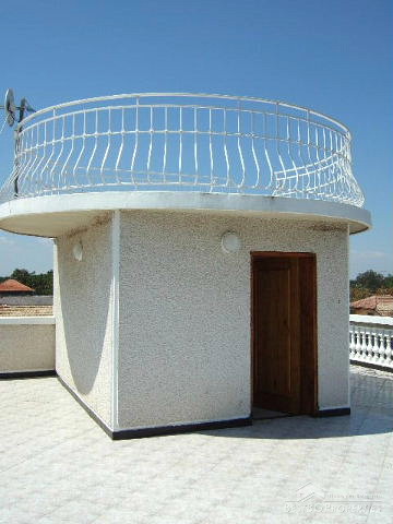 The house comprises: on the ground floor - two bedrooms, large bathroom and kitchen, plus integral garage. First floor - one dining room in the middle with open plan kitchen, two bedrooms on either side, bathroom, toilet, and small storeroom at the back. The internal staircase leads to the second floor, which consists of living room/kitchen, three bedrooms, bathroom/toilet and two balconies on each side of the house. Each floor has a separate shower with toilet already tiled and with bowls, sinks and showers already fitted, plus two full sized baths. Two electric water heaters are installed to provide the hot water for the house. Follow the internal staircase upwards and it will lead you to the roof of the house where you'll find a vast terrace for up to 30 guests. More stairs lead to the secured round terrace/viewing platform with amazing 180 degree panoramic views to the Black Sea coast and the village.