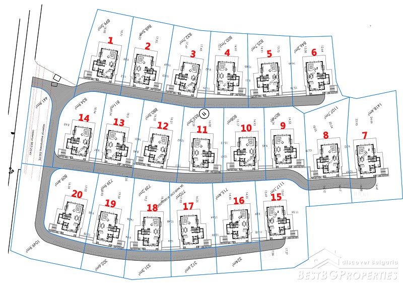 The complex will consist of 20 single-family houses, spread across 25 000 sq. m., each house with a total area of 536 sq. m., with prices starting from 1250 € per sq m. The fully landscaped gardens around the houses will vary between 800 sq. m. and 1000 sq. m. and will have a built in irrigation system, similarly to the common areas at the complex.