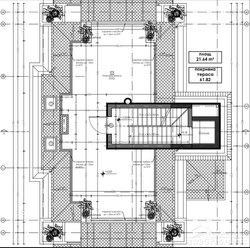 The rooftop will host a 65 sq. m. terrace with a 360о panoramic view, especially suitable for a barbecue and sunbathing area. The terrace is a compliment for the clients and is, therefore, not included in the price.