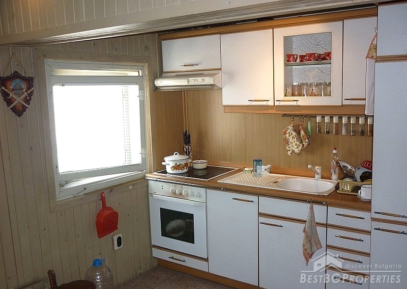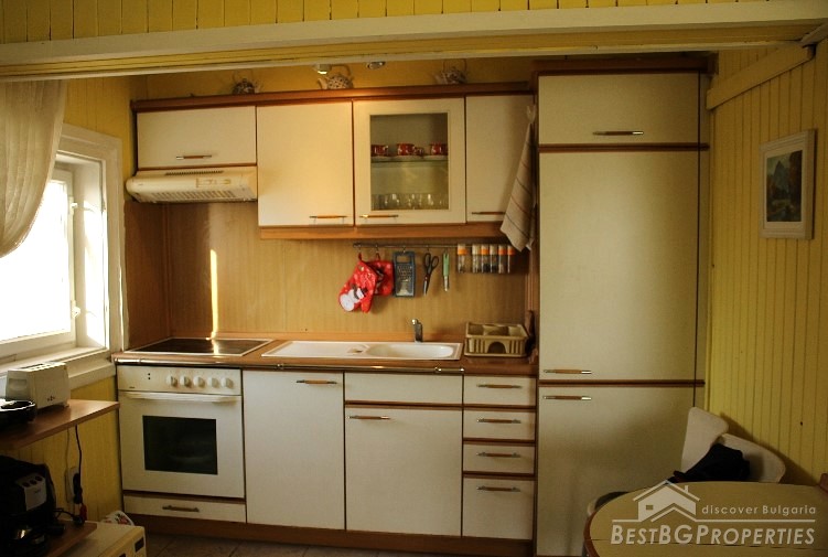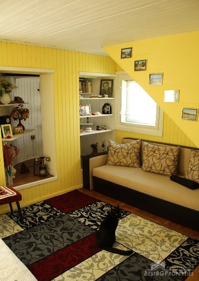 The property has total living area of 115 sq m distributed between two levels. On the first level there is a corridor, bedroom, living room and a kitchen. The second level consists of one bedroom, bathroom with WC, and a living room with access to a huge rooftop terrace with amazing panoramic view. The area of the terrace is additional 140 sq m.