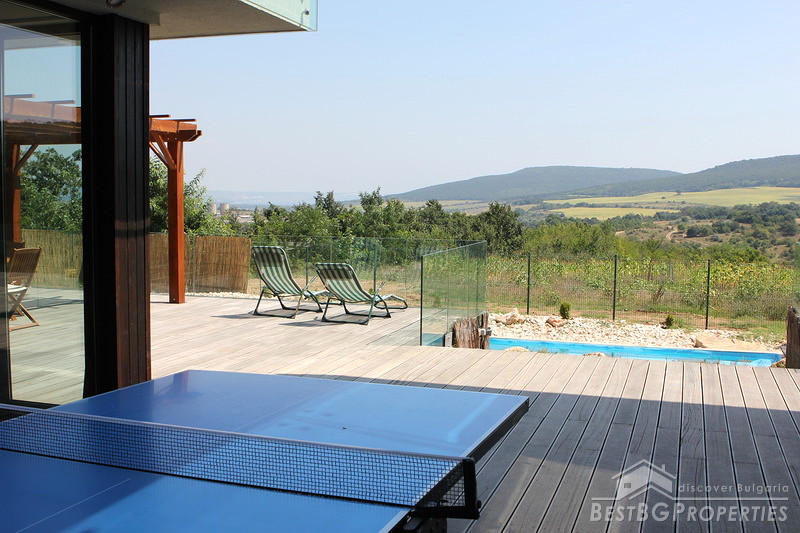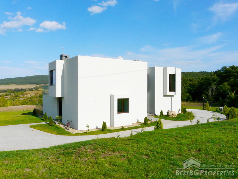 This is a magnificent mansion built in 2013 under the unique design of the British architectural bureau, located on the edge of an oak forest, 5 kilometers from the beach of Albena and in a 15-minute drive from Varna.