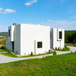 The building consists of two parts, connected by a glass corridor. In the first wing of the villa, there are 2 bedrooms, a living room with a spacious kitchen, 2 bathrooms and a basement with sauna for 8 people.