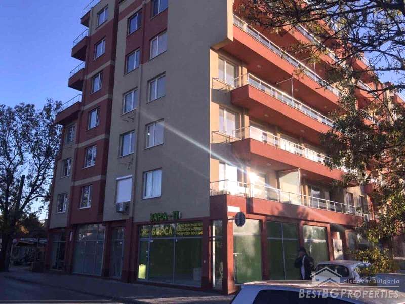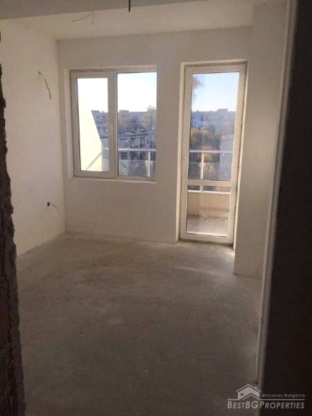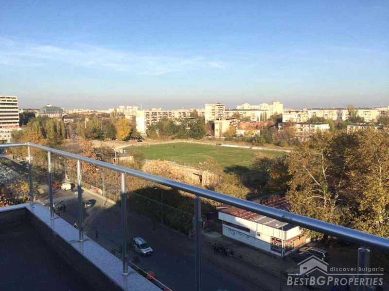 The property is located near the Spartak stadium, in a new monolithic building with Act 16 since 2016. The apartment is completed according the Bulgarian standards – on plastering and putty. It has an area of 142 sq m distributed between three bedrooms, a spacious living room with kitchen, dining room and two bathrooms. The apartment also has a large panoramic terrace with an area of 65 sq m.