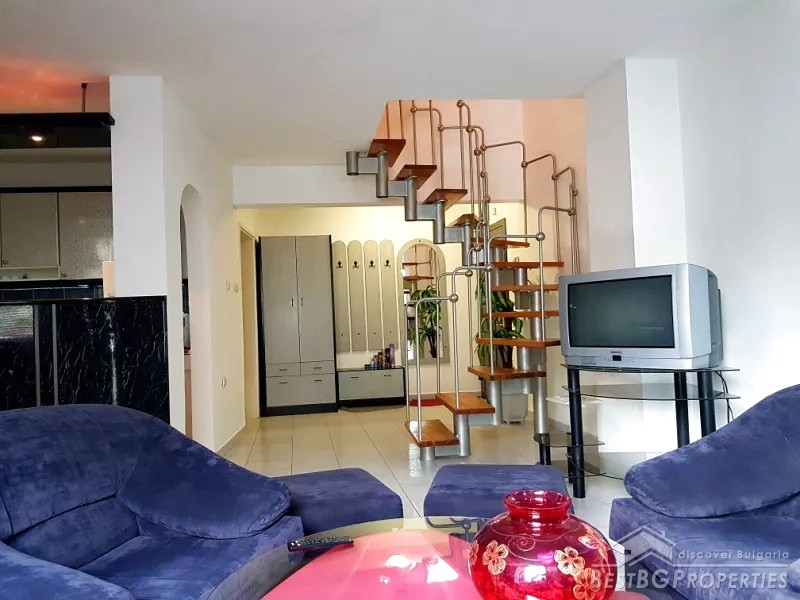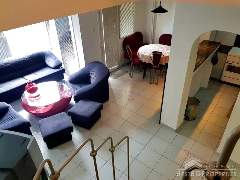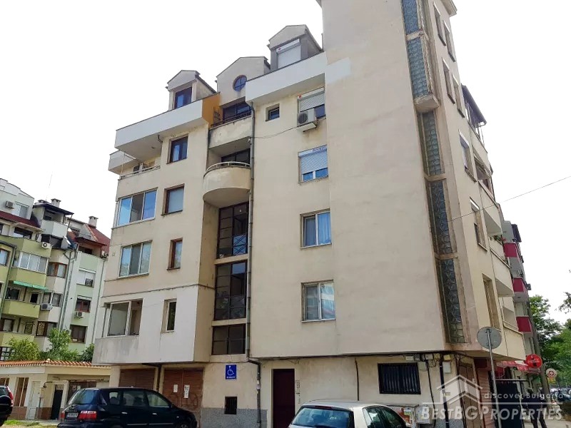 This is a Maisonette apartment for sale located in the city of Plovdiv. Its total living area is 118 sq m. The apartment is on the third floor out of six in a solid, brick residential building, built in 1996.