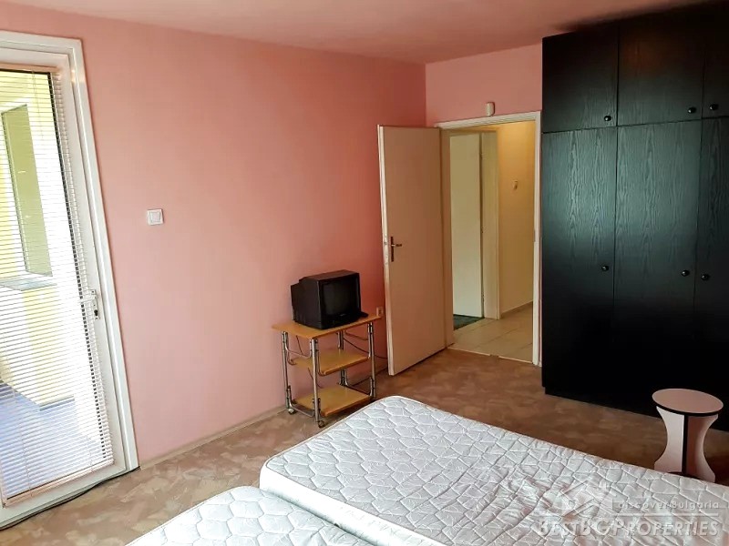 The apartment has eastern exposure. It is sold with a garage of 15 sq m, which is near the entrance of the building and also a basement of 9 sq m. The building is next to a park, the Fair, Kaufland, bus stop, school and a kindergarten.