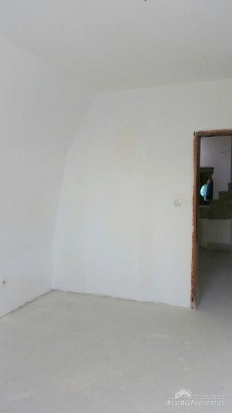 The exposure is towards southeast. The apartment is on the fifth and sixth floors of the building. It is new construction, without the final finishing – plastering and putty. There is external and internal isolation, wooden window frames with double-glazing, interior and front doors.