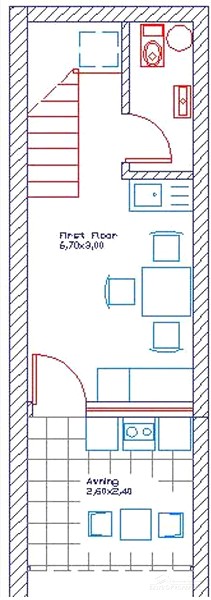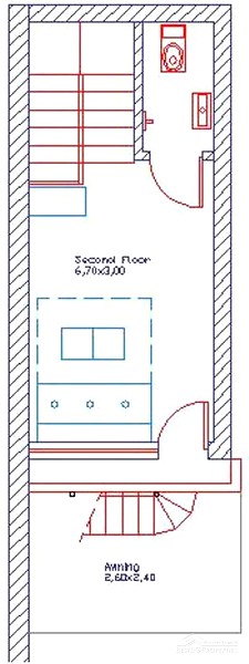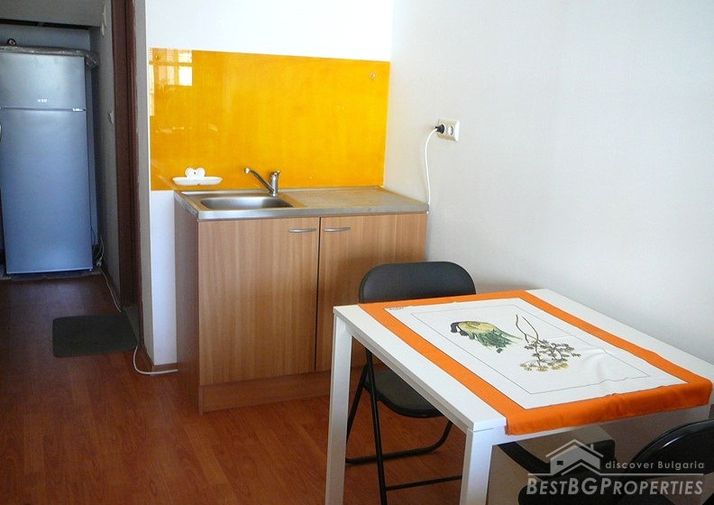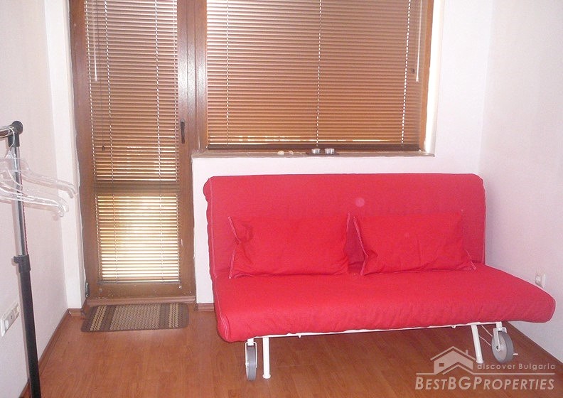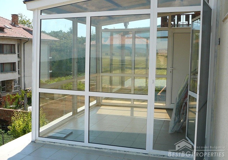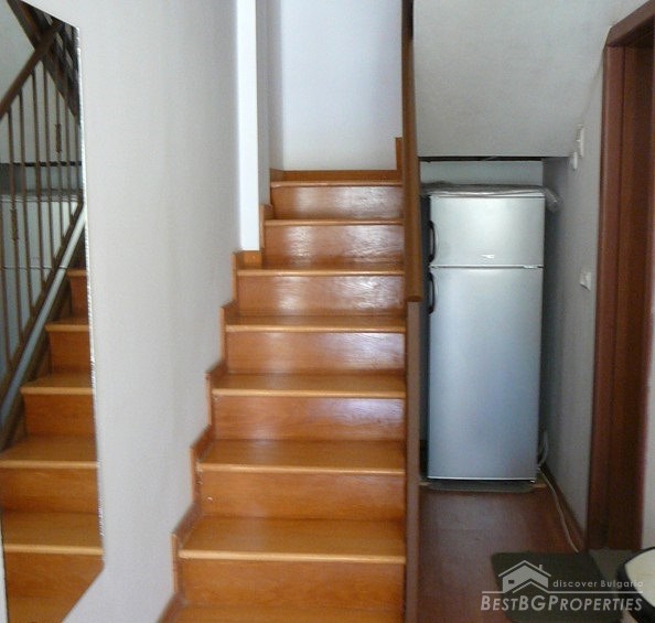 The apartment consists of a dining room, kitchen, one bedroom, and a bathroom with WC. On the third level there is a glazed premise with panoramic balcony. The maisonette is fully isolated. It has faience and terracotta finished bathroom and WC. The floors in the rooms are completed with laminated parquet. There is PVC window joineries, inside roller blinds.