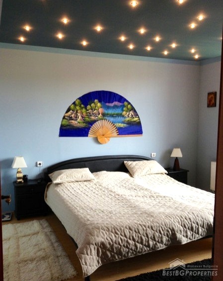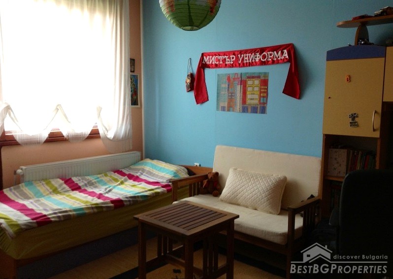 The offered property consists of two very large apartments situated right above each other in a brick residential building. The building was completed in 1999 and has Act 16. The first apartment consists of 6 rooms in total – one bedroom, children’s room, closet, kitchen, dining and living room. There is also a bathroom with WC, a separate WC and three balconies. The apartment faces east, west and south.