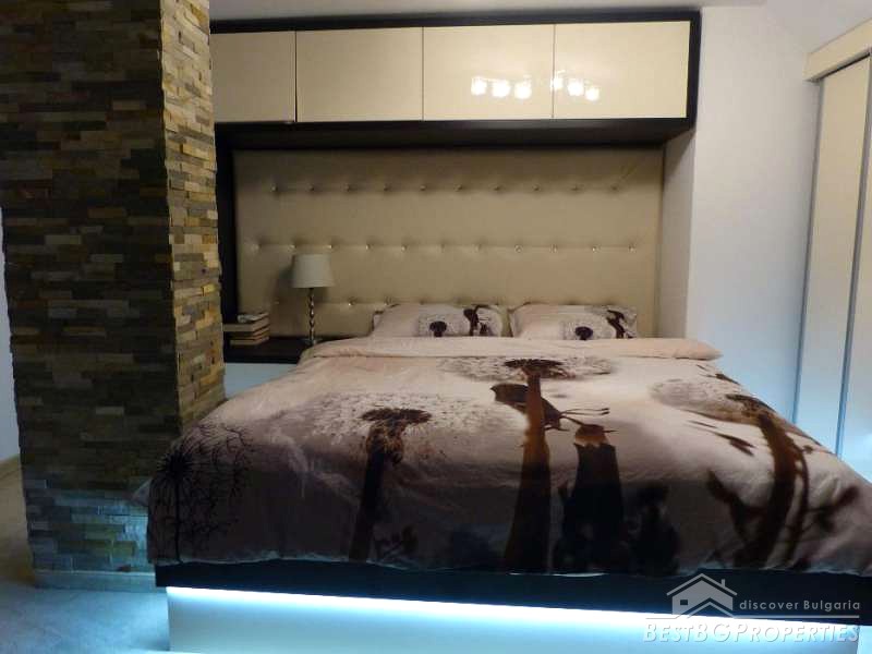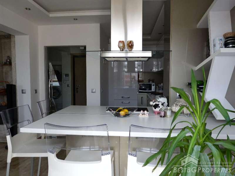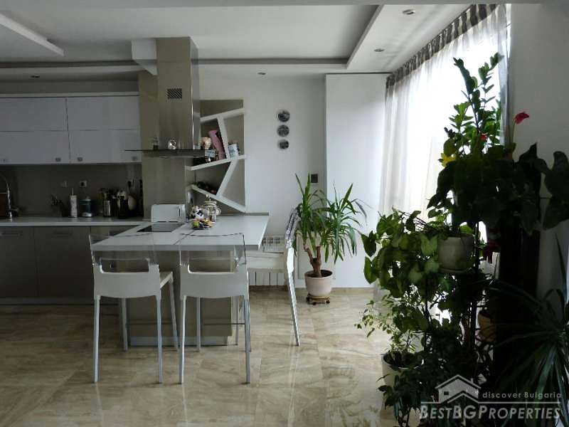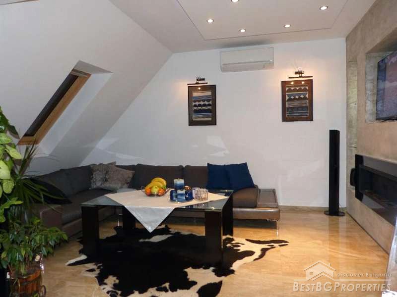 The apartment is a maisonette type. It is set on the last fourth and fifth floors of a new residential building, finished in 2011. The total living area of the property is 100 sq m. It is very spacious and cozy apartment.