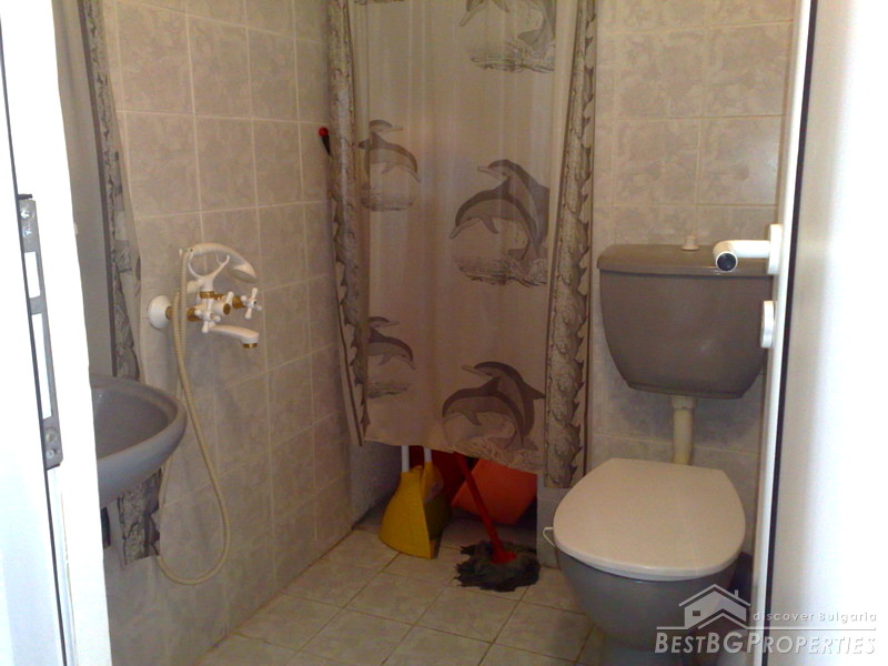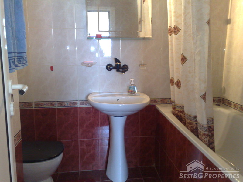 The apartment is finished according to the highest requirements of construction. The floorings are with terracotta or wooden parquet. The walls and ceilings are painted with high quality latex paint. The window joineries are PVC, all kinds of switches, plugs and lighting objects are installed. There is water and electricity provided, also there is central heating.