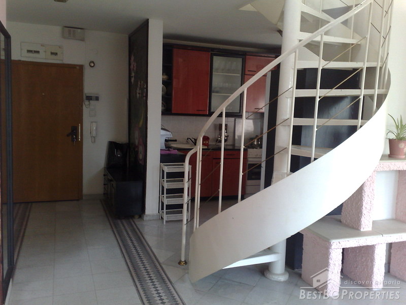 This is another offer for a luxurious apartment for sale located in the center of Sofia. It is a cozy two-level apartment with modern furniture, situated close to Shipchenski prohod boulevard. The area is quiet and very communicative. There are school, kinder garden, mall, lots of transport links on Shipchenski prohod Boulevard.