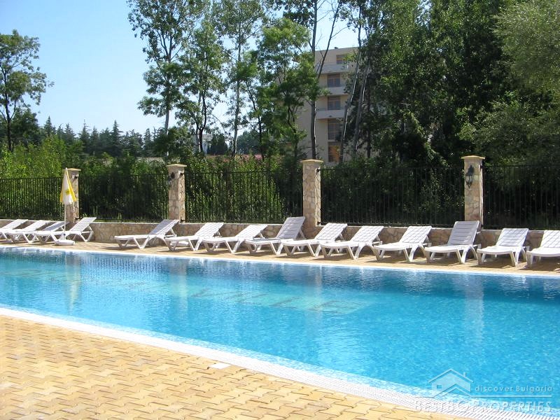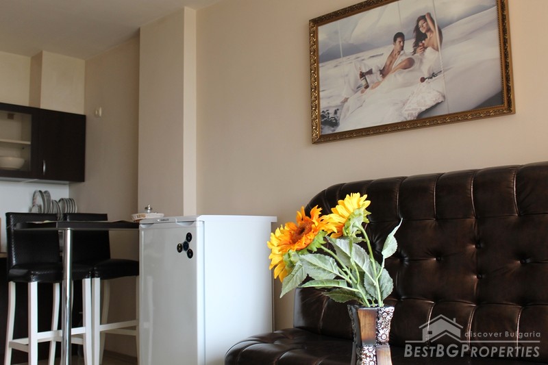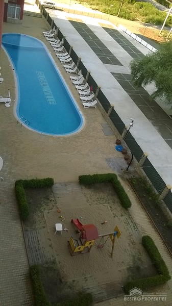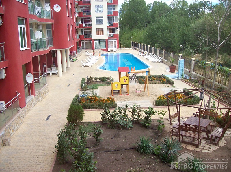 The building has very convenient location, near the famous Cocoa Beach - 150 meters, close to a bus stop to Nessebar, Sveti Vlas, Pomorie and the central airport of Burgas. The central supermarket Mladost is just at 8-10 min walk. The building is situated in a quiet, comfortable place, the apartment itself is also very cozy and comfortable! The building has a small shop where you can buy everything you need. At the disposal of the owners of the complex and their guests there is an inner courtyard with adult and children's pools, sun loungers and parasols, as well a children's playground and a parking, only for the residents of the complex.