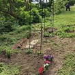 There is water and electricity supply. There is also a well in the yard. The yard itself was leveled with an excavator. Its size is 1940 square meters m. There are over 50x small fruit trees planted in the yard.