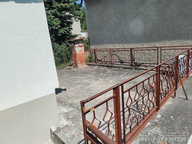 For sale is a solid two-storey house with a total living area of 120 sq m, built on a terraced plot of 789 sq m, featuring a panoramic terrace, stone barn and a septic tank.