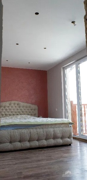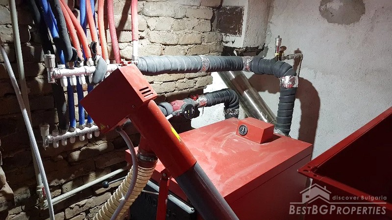 The house has a wonderful location in the village, sits on an asphalt road and is supplied with sewerage, internet. It is suitable for permanent living. The building is after a complete renovation - all new electrical wiring, piping. Inside it is lined with Knauf plasterboard and insulation. There are seven-chamber window joineries with three-layer Salamander glazing. The equipment in the bathrooms is TEKA and Vidima. The house benefits with local heating via pellet burner with Smarthome system. There are radiators in every premise - the rooms, hallway, bathrooms. There is a brand-new boiler, brand new parquet.
