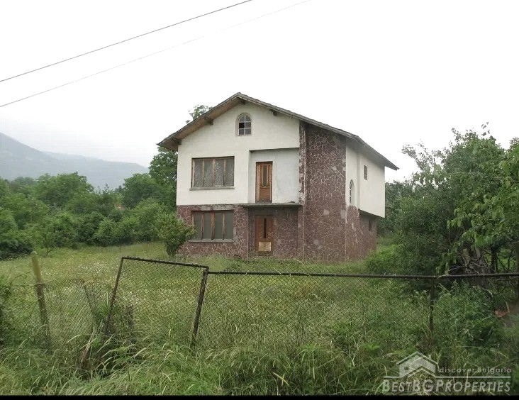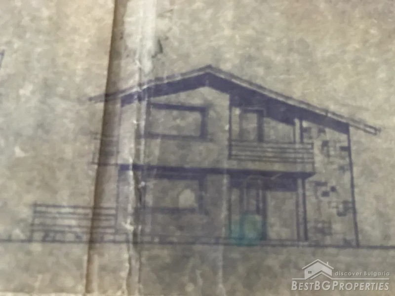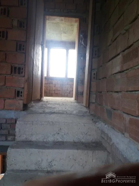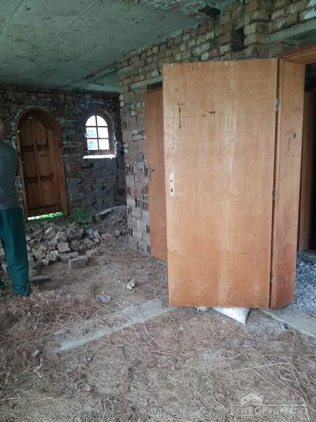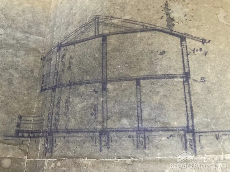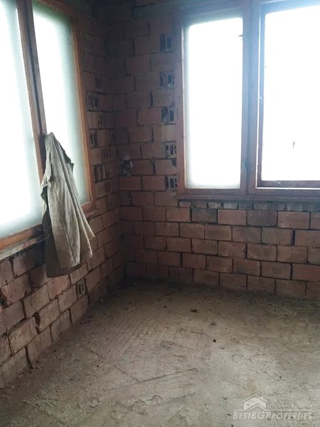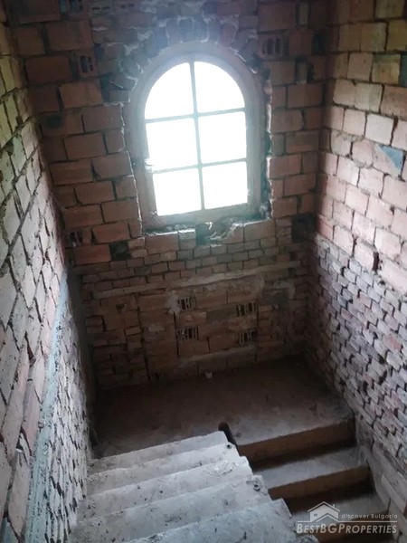 The house is located in a mountain village, 5 km the town of from Yablanitsa. Externally, the house is plastered and lined with natural red stone. Inside it is at rough finish. The building has three concrete slabs between the floors and columns.