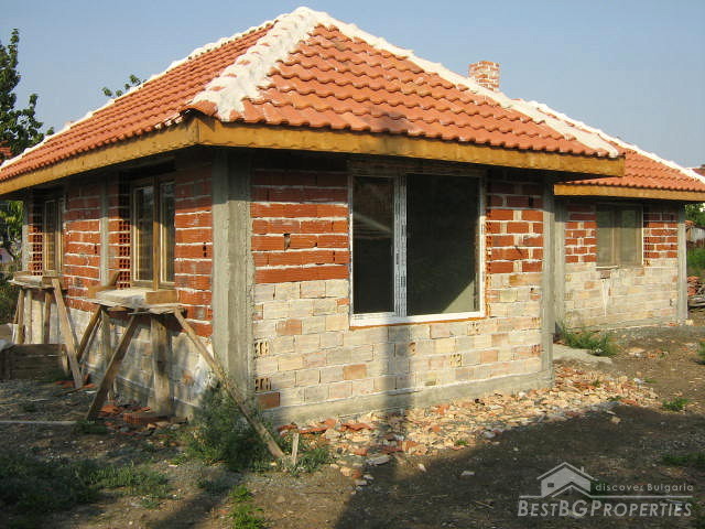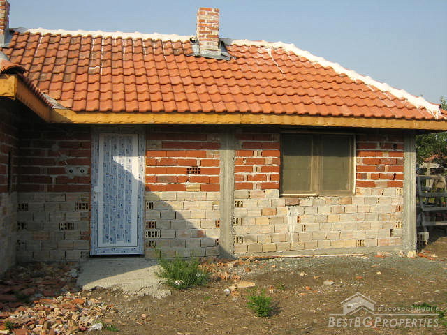 Check out this newly built house in the lovely countryside of Bulgaria. The property advertised has 4 rooms in total distributed on one floor. The house is brand new and can easily be turned into a lovely holiday place. The house is being sold with a finished rendering from the outside, PVC double glazing, new door and external toilet. The size of the garden that goes with the house is 900 sq m, it will give you enough privacy and space. There is possibility for a BBQ area and a garage. Our building team can install even a middle sized swimming pool. The property is situated in a village just 11 km away from Karnobat – a famous place for wine production. The International Airport and Burgas city are 55 km away. Within an hour and fifteen minutes are the sandy beaches of Black Sea Coast. The area provides excellent fishing and hunting opportunities. The new motorway “Trakia” passes nearby at 5 km. The area here is well known for the increasing number of foreign properties around. Don’t you want to own a property in this hospitable country!