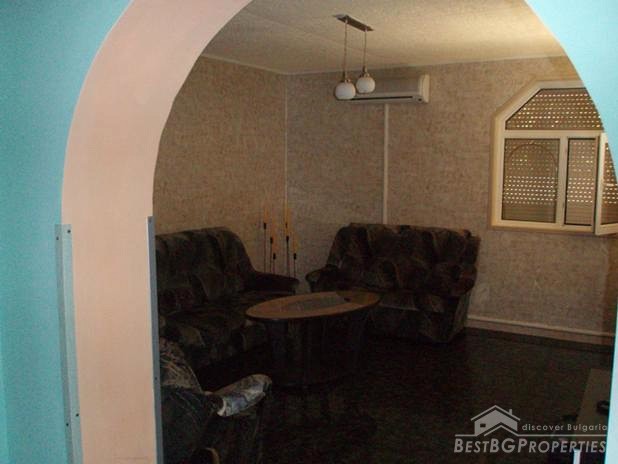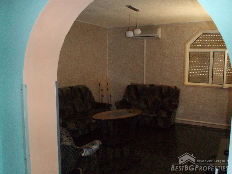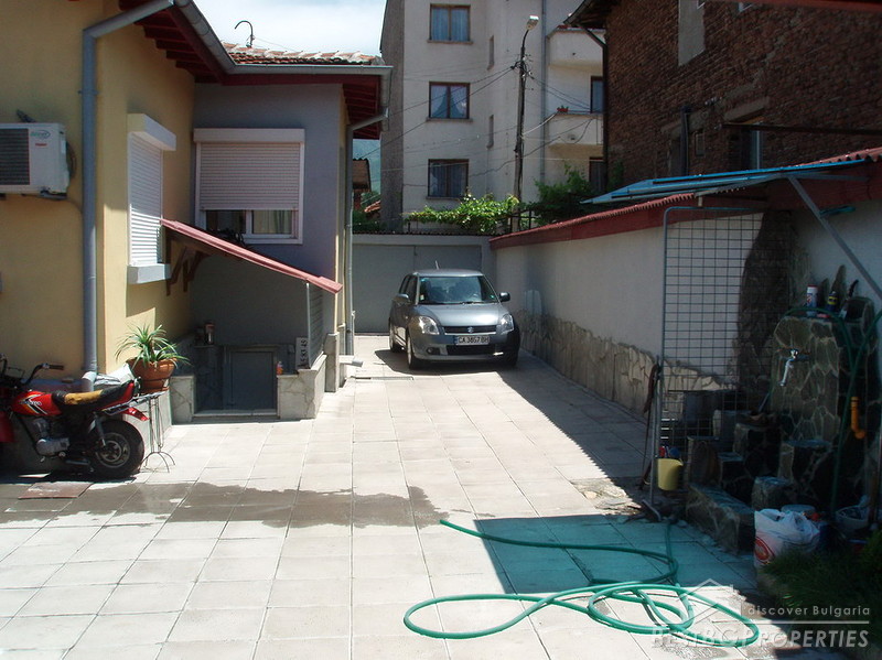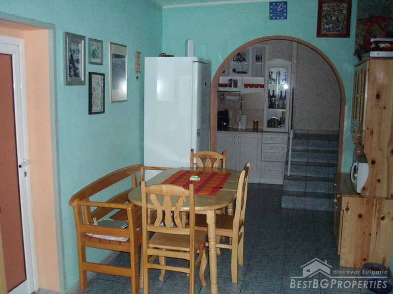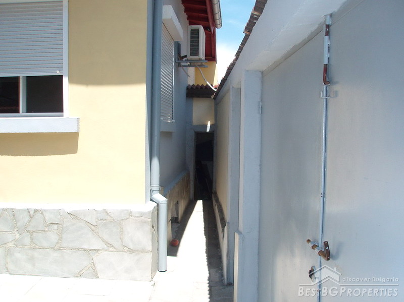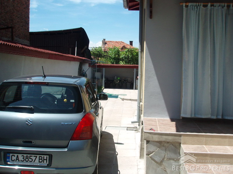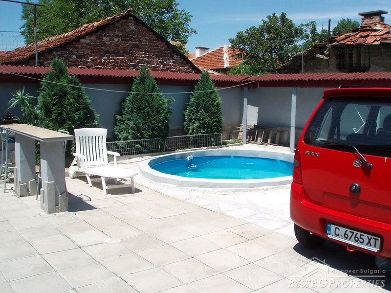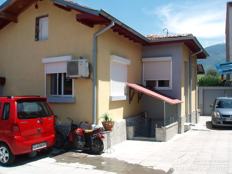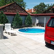 This is a luxury house near the town of Dupnitsa. The property has high brick fence behind which in the 300 sq m yard there are swimming pool, barbeque, fountain, covered areas for hanging out washing and green areas. On the ground floor there are: 2 rooms with PVC windows and a garage with outlet on the street and roller Venetian blind. On the first floor there are: living room, kitchen with dining room, big bedroom, small bedroom with balcony and bathroom. It is all with internal isolation, aluminium doors, terracotta, faience, granite, air conditioners, and floor heating. The house has modern security system with surveillance cameras which is important extra if you need to travel a lot. It is fully and luxury furnished and has cable TV and internet. You can bring your luggage in and live there. You can invite your friends and proudly show them your new summer home.