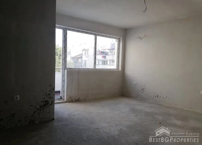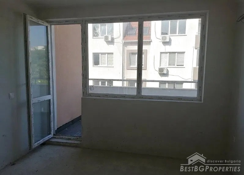 The apartment is sold finished to meet the Bulgarian National Standards - plastered walls, screed floor, aluminum window frames, front and interior doors. The distribution inside is very functional and spacious - living room with a kitchen, one bedroom, a bathroom with a toilet, a corridor with a closet and two terraces.