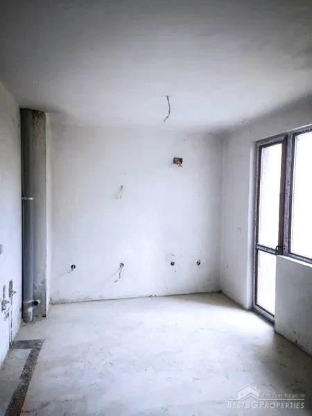 The apartment is located in a luxury new building with educated and quiet neighbors. It is on the first residential floor / second floor above the ground. The finishing meets the Bulgarian standards - plaster and putty.