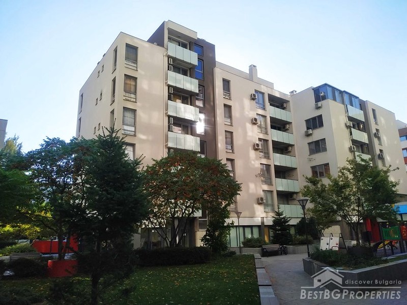 The apartment has a total living area of 69.59 sq m and a clean living space of 61.24 sq m. It is located in a gated residential complex with a landscaped courtyard, an underground parking with inside connection to the elevators, constant video surveillance, doorman, access control, etc. The complex also has a supermarket and other shops. Nearby there are several pharmacies, a post office. In the immediate vicinity there are public transport stops, a school and an Econt office.