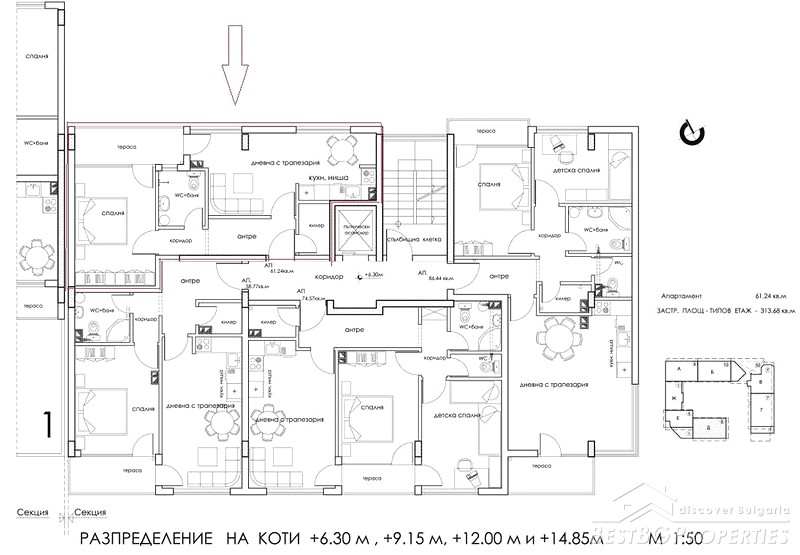The finishing is turnkey - laminated parquet and tiles, latex paint, electrical sockets and light switches. Sold with furniture and appliances - built-in.
