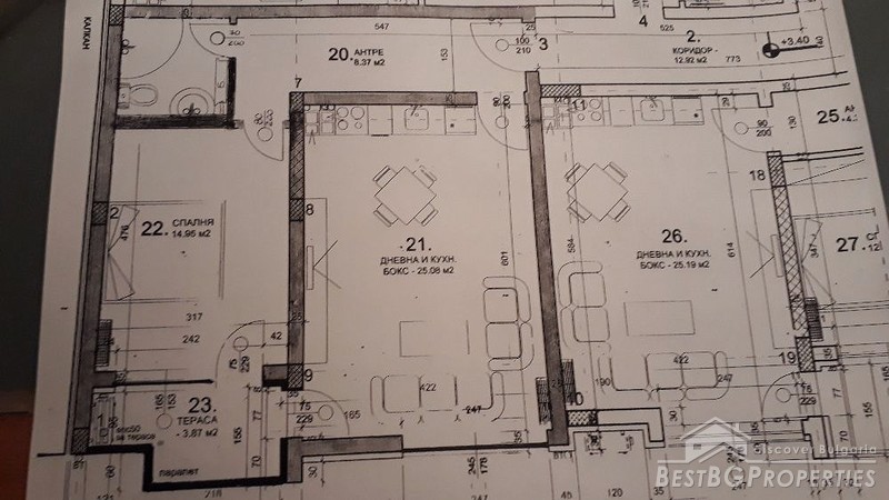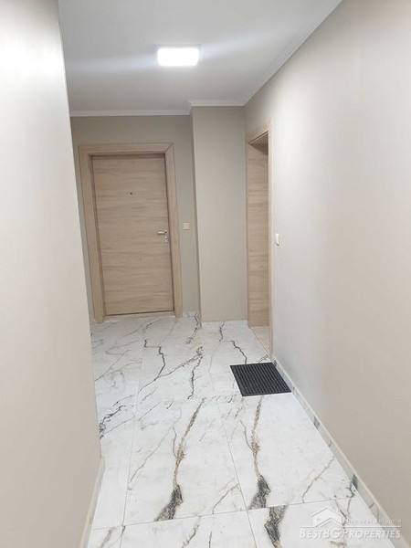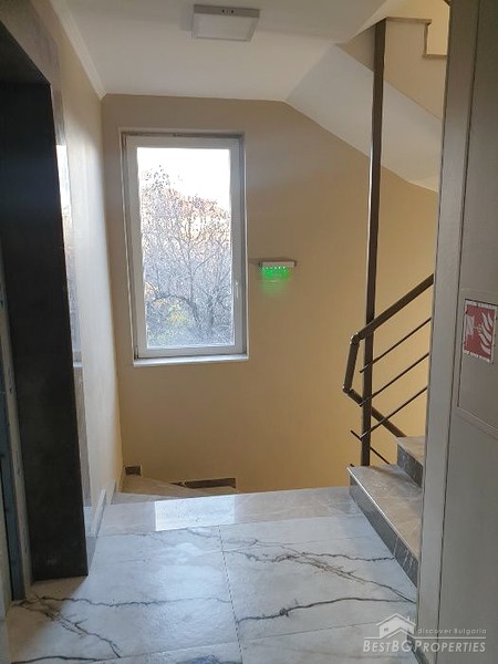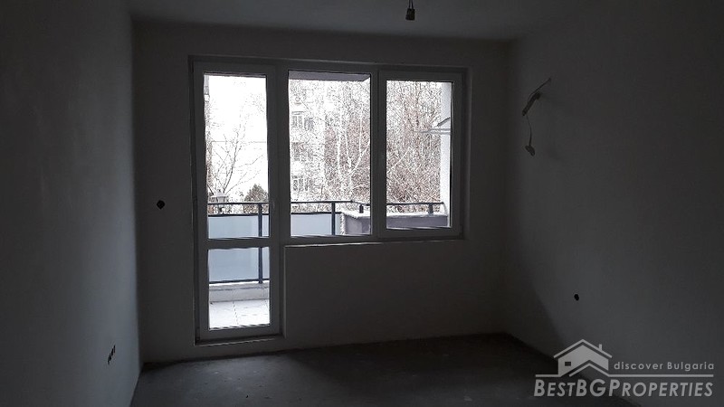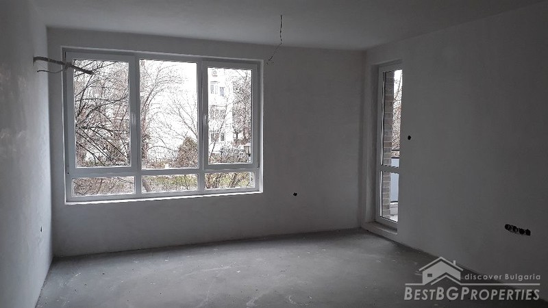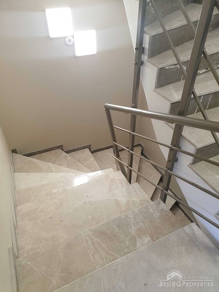 The apartment has a total living area of 66 sq m. It is located on the first residential floor above the ground floor garages, in a new brick building. The building is in Vastanicheski area of Plovdiv City.