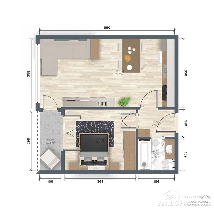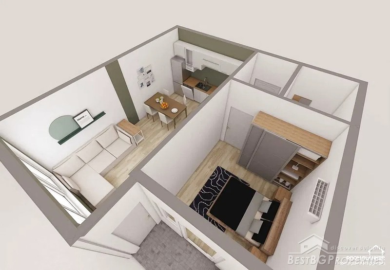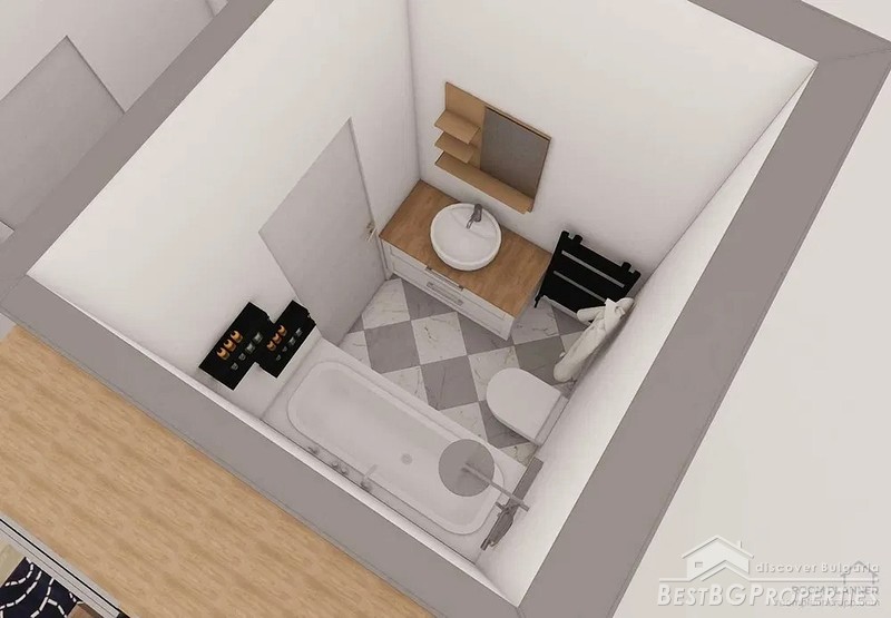 For sale is a one-bedroom apartment located in a newly built luxury gated complex with a courtyard and a children's playground. The complex is located Ostromila area in Plovdiv City.