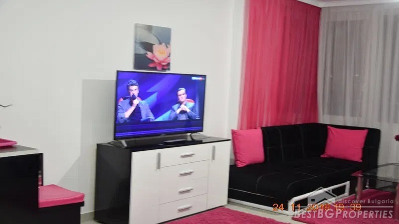 The finishing is turnkey - PVC window joinery, terracotta and faience floors in the bathroom, granite in the living room and hallway, laminate in the bedroom. The apartment is furnished with new furniture and appliances.